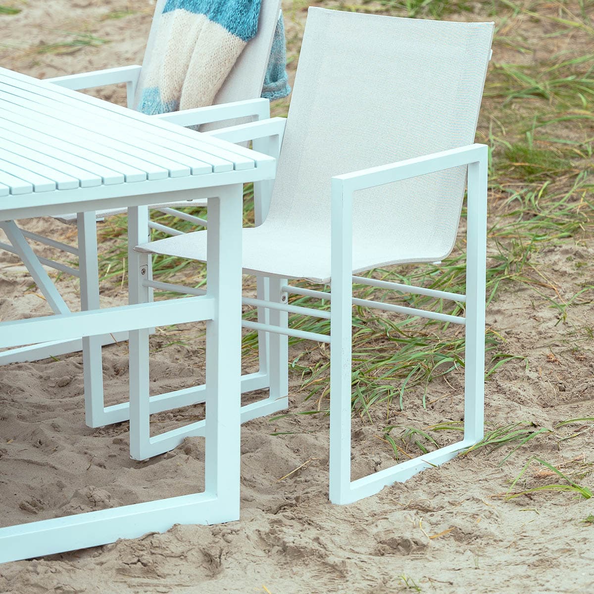 Stilrent spisebord i hvit aluminium.